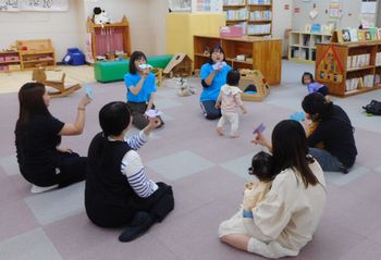 1日2クールで予約制で開館しています。午前の部は11時10分、午後の部は14時30分くらいから、スタッフによる手遊びをしたり絵本を読んだり、親子で体を動かしたりしています。