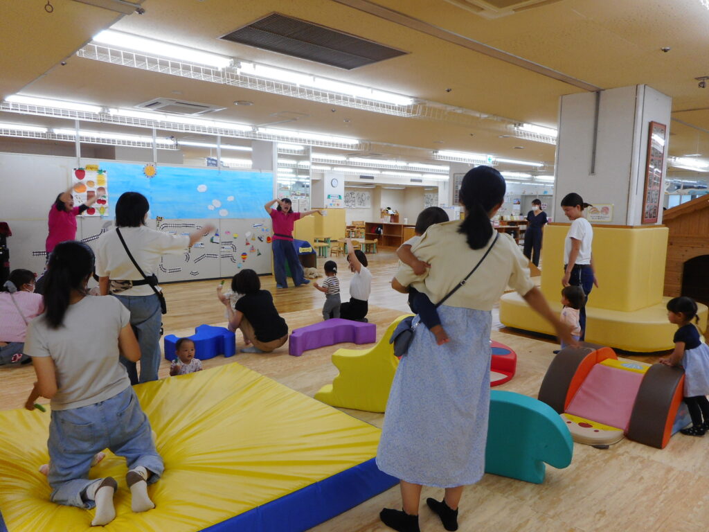 気候も涼しくなってきて、食欲の秋が到来いたしました! じゃん・けん・ぽんスタッフもくいしんぼうぞろいなので、今日は食べ物にちなんだ遊びをみんなで楽しみました。 「ぺったらぺったん」「てんやのおもち」のわらべうた遊びの後、 『おきたらごはん』(岩合光明:さく 福音館書店)の写真絵本を楽しみました。 ちいさなお友だちにもおなじみのパンダさんやライオンさん、カンガルーさんなど可愛い寝顔と ごはんの様子をじーっと見ていました。 どうぶつさんが、 最後はみんな大好きな♬おやつの体操 をしました。 いっぱい遊んで、いっぱい食べようね。