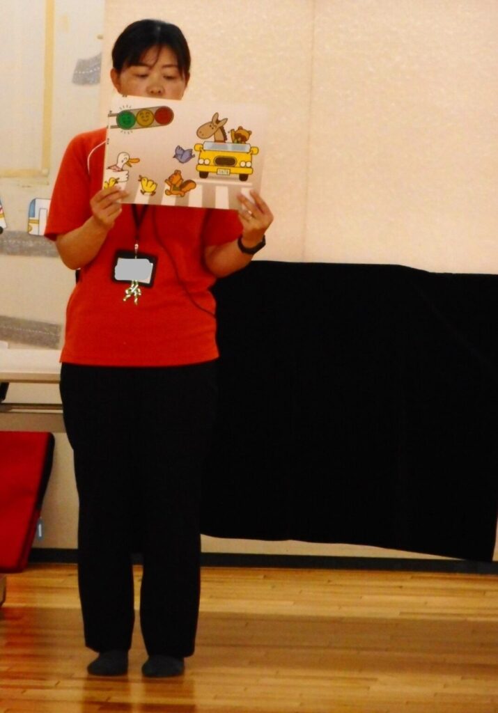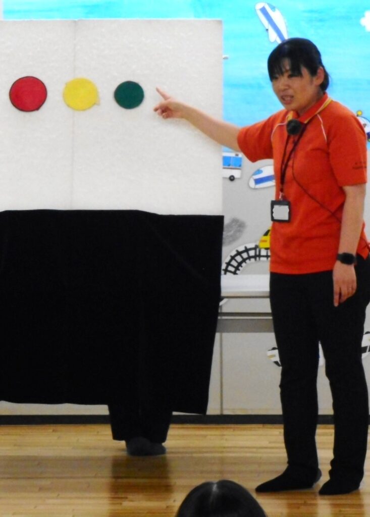 こんにちは。 本日は、運動会の園も多いでしょうか? スポーツの秋ですね。 さて、こども広場じゃん・けん・ぽんでは、長野県交通安全教育支援センターの皆さんによる「交通安全のおはなし」がありました。 パネルシアターでは、「赤・黄・青(緑)」と、色んな色の、色んな動物の「まんまるちゃん」が登場! 他にも、紙芝居を見たりリズムに乗って体操をしながら、交通安全のポイントや大切さを学びました。 (この信号🚥は車用の信号) 最後は皆で「ストップ体操」! ♬ストップ ストップ よく見よう ・・・ 「ストップ」は、交通安全の上で、とても大事なこと。 道路に飛び出さず、止まろうね!止まります!! 歩けるようになった小さいお子さんは、大人と手を繋ぎ歩きましょう。 次回「交通安全のおはなし」は、12月1日(月)午前11:00からです どうぞ皆さんお越しください ~~~~~~~~~~~~~~~~~~~~~~~~~~ 《じゃん・けん・ぽん運動会のお知らせ》 10月8日(水)午前11時~ じゃん・けん・ぽんフロアで行います 玉入れや体操、みんなでサーキットなど、乳幼児親子さんが楽しめる内容を企画しています💖 遊びに来てください(#^.^#)