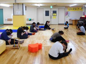 「公園で遊んでいたら結構寒くて、遊びに来ました。」との声。お天気ですが、気温が低い様ですね。 ふれあい遊びでは、”きたよ きたよ”を楽しみました。 ”こちょこちょマン”はみんな大好きこちょこちょされてにっこにこ😊。 ”抱っこマン”では、ぎゅ~とママの抱っこ♡あったかい。 ”高い高いマン”では、小さな高い高~いや大きな高い高~いでいい気持ち♡ 「重くなったね」・・・成長が実感できる瞬間!! こころもからだもあったかくなりました。