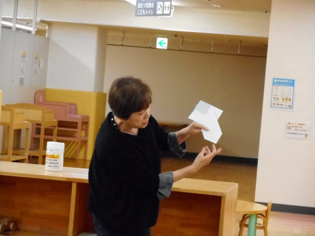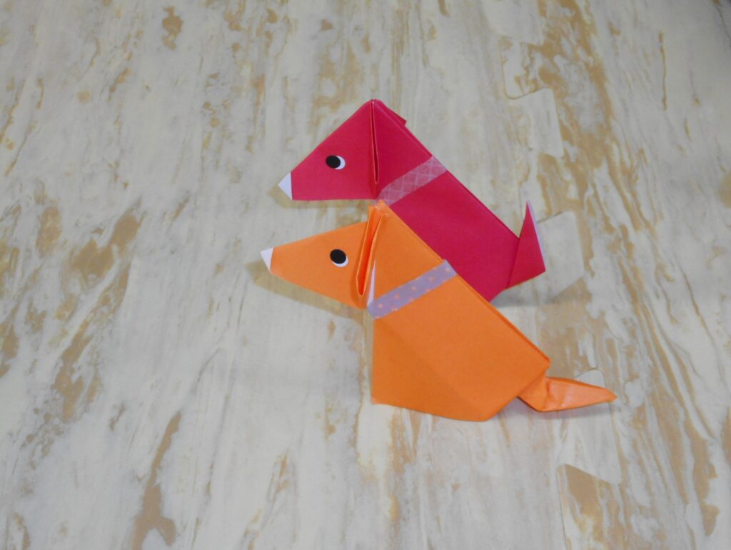 こんにちは(⌒∇⌒) 今日は、宮野先生にお越しいただいて「折り紙教室」を行いました。 今回の作品は、「いぬ」です🐶 首輪もちゃんとつけていますよ。 ピンとしたしっぽも、垂れたしっぽも可愛いですね🌟 親子で真剣に折り紙作り✨ 完成!とっても上手に出来ました!! 次回の「折り紙教室」は、11月20日(木)11時~です。 ご参加、お待ちしています(^▽^)/