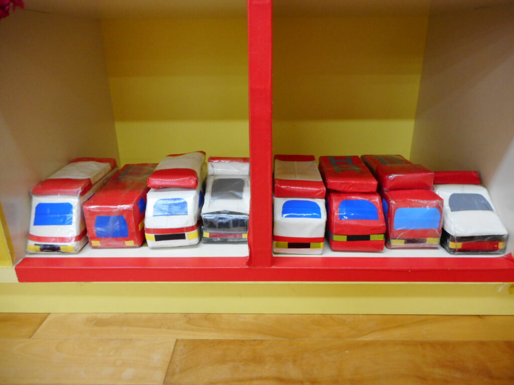 🚒緊急車両待機中🚑🚓 2025年11月10日 いつも人気で忙しい緊急車両たち、今日はのんびり車庫に入っていました。 いつもよく働いているので、お休みも必要ですね。 一緒に遊んだ後は車庫に片付けて、休ませてあげてくださいね。