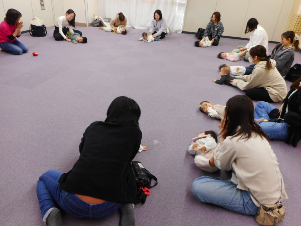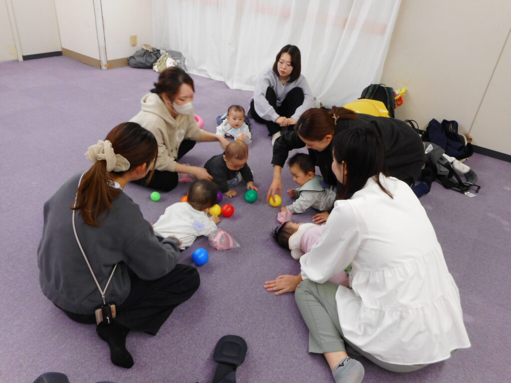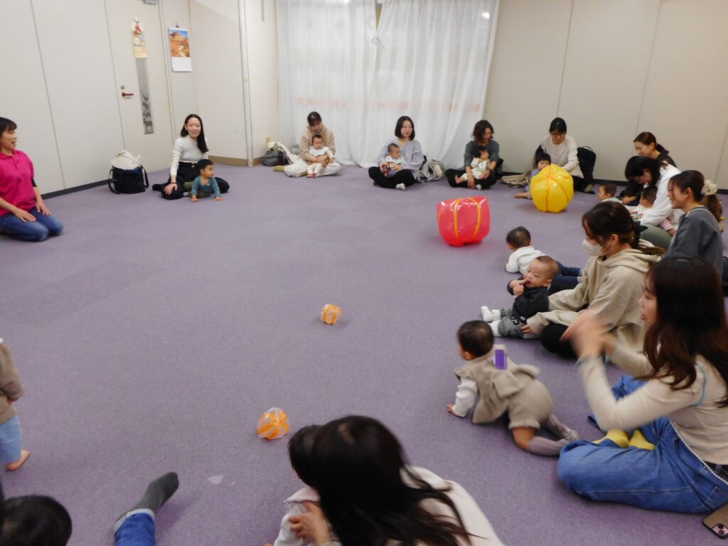 今日のねんねの次の会には15組の参加がありました。 ビニール袋を使ったボールをみんなで作ってみました。 ビニール袋を膨らませて、ビニールテープをくるくる巻くとポンポン跳ねるボールに変身!! すぐにしぼんでしまうこともありますが、シャカシャカ音のするボールに興味津々。 お母さん達がフリートークの間、遊んでいるお子さんもいましたね。 お母さん達は時間までいっぱいお話していました。 次回ねんねの次の会 12月8日(月)10:30~ ぜひお越しください。