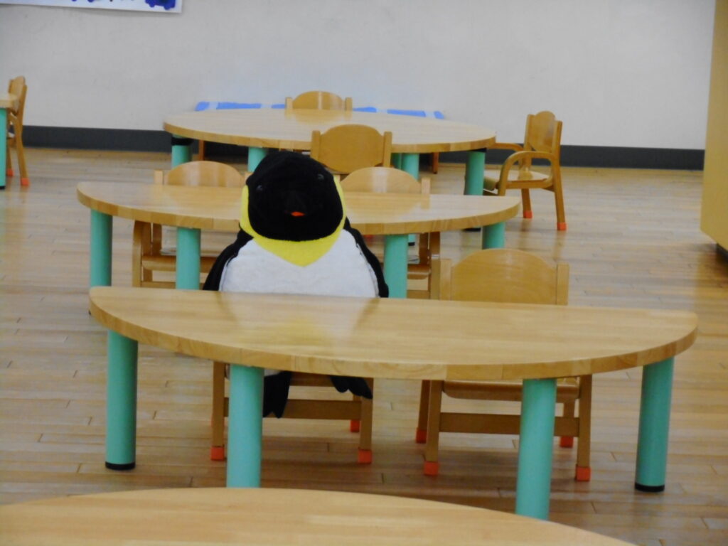 3連休中日、ぽかぽか陽気の一日になりました。 「初めて電車で来てみました」 「これから公園へお出かけです」 など連休中ならではの声が聞かれました。 誰かお食事中かなと思ったら、 ペンギンさんでした。 一緒にお食事かと思ったら、寂しく置いてけぼりになってました。 ちゃんと元の場所に戻ろうね。