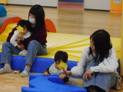今日は、まりこちゃんの”マザ-グースの手遊び”がお休みで残念でしたね。 そこで、Let’s try English!! 手遊び(Head Shoulders Knees&Toes)をしました。 大型絵本「クリスマスのかくれんぼ」 ポプラ社 読んで楽しみました。この本は、英単語に触れられます!! 🌟星に目と口を貼って、指にはめて 🌟きらきら星を英語で歌いました♪(Twinkle Twinkle Little Star) ~🌟星を見ながら~