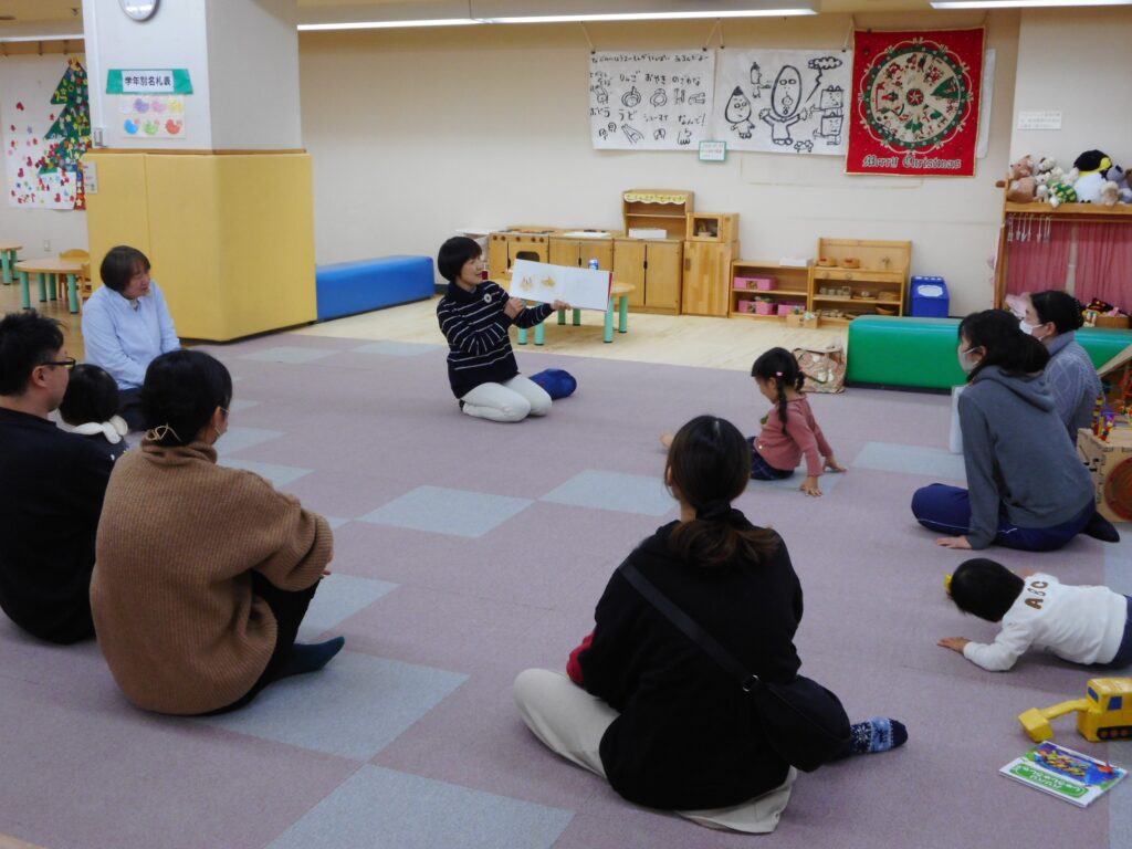 こんにちは😊 今日は、稲冨さんに来ていただいて「ばぶちゃんからのおはなしわらべうた」がありました(⌒∇⌒) 恒例の♪こんこんちきちーこんちきちー♪で始まり、 ♪じーじーばあー♪や♪ちゅっちゅっ こっことまれ♪などの布遊びを楽しみました✨ お子さんたちは皆、わらべ歌と布の動きに釘付けになっていましたよ👀 そして、今日は12月24日クリスマスイブということで、 「メリークリスマス」の指遊びや 絵本「サンタのいちねん トナカイのいちねん」(作・絵 きしら まゆこ)出版:ひさかたチャイルド を読んでもらいクリスマス気分を満喫しました🎅 最期は、絵本「おせち」(文・絵 内田 有美)出版:福音館書店 で来年に向けてお正月気分が盛り上がってきました🎍 盛りだくさんの楽しいひとときでした🌟 次回は、1月28日(水)14:30~です。 ご参加、お待ちしています(*^▽^*)
