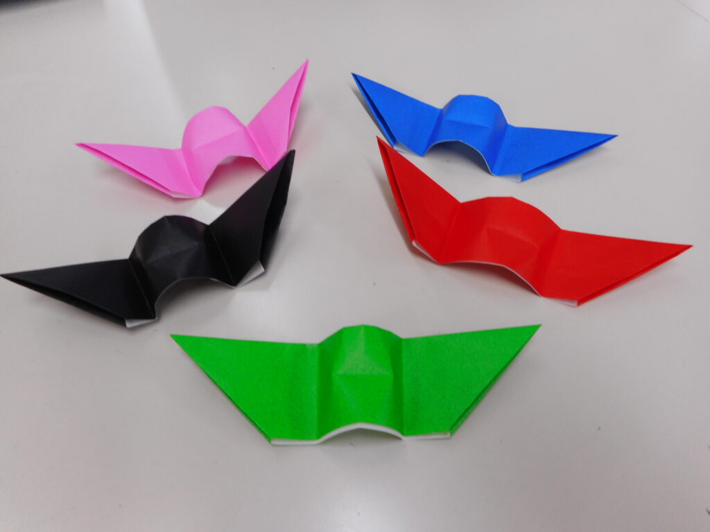 今日は折り紙教室でした。 宮野先生に、今日は「ぱたぱたこうもりさん」を教えていただきました。 シンプルな折り方なのに 1つの折り目でぱたぱたと動くおもちゃに変身する折り紙のふしぎでした! 折り紙教室は、小さくて折れないお子さんはママが楽しめますので、お越しの際はご参加くださいね。 『こども広場じゃん・けん・ぽん』Instagramにぱたぱたする様子を動画でアップしてあります。 よろしかったら合わせてご覧くださいね。 次回の折り紙教室は、2月5日(木)です。ご参加お待ちしています。