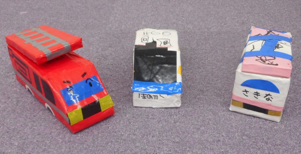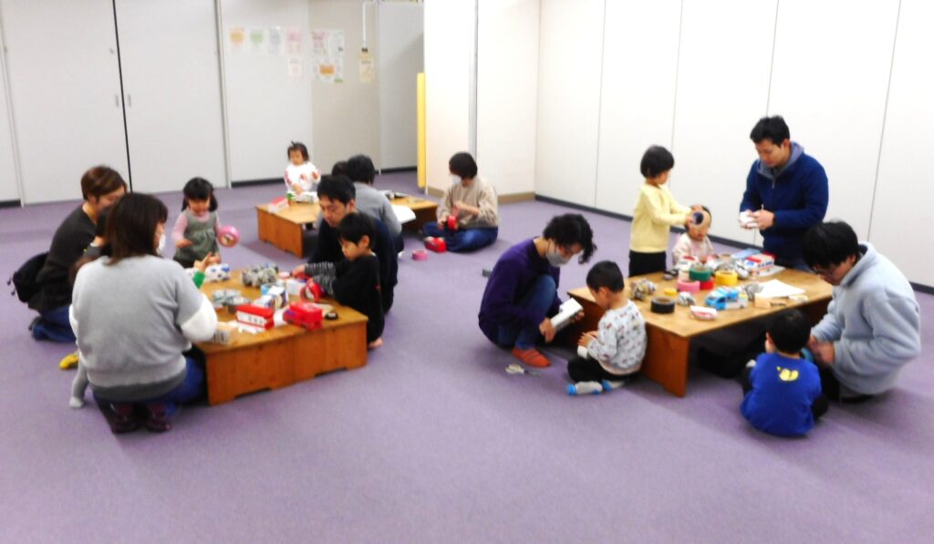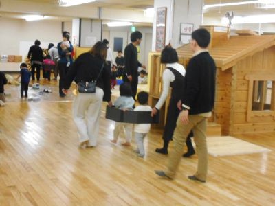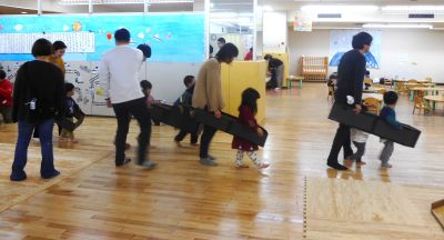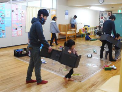 寒さ厳しい冬、いっぱい遊ぼうと「冬のあそび広場」2日目が開催されました。 ~お家の人と一緒に、牛乳パックの乗り物作り~ オリジナルの乗り物が完成!!お家でたくさん遊んでね。 ~フロアでの電車ごっこ~ 🎫腕に切符を付け、4つの駅に向かって出発進行🚃!! ♪がたんごとん がたんごとん♪ ♪がたんごとん がたんごとん♪ ♪がたんごとん がたんごとん♪ 大賑わいのじゃん・けん・ぽんでした。