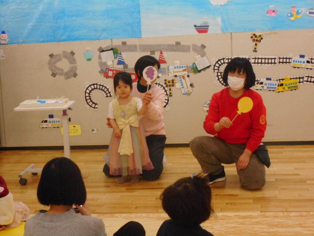 みんなで”ふうせん”のシアターを楽しみました。 好きな色のふうせんを選んで、歌に合わせてフワフワ~ 手のひらの中でクルクルすると。。。 あれあれ~⁈ みんなの好きなものに変わったよ(^^♪ ふしぎ、ふしぎ、おもしろいね~ またみんなであそびましょうね(*^^*)