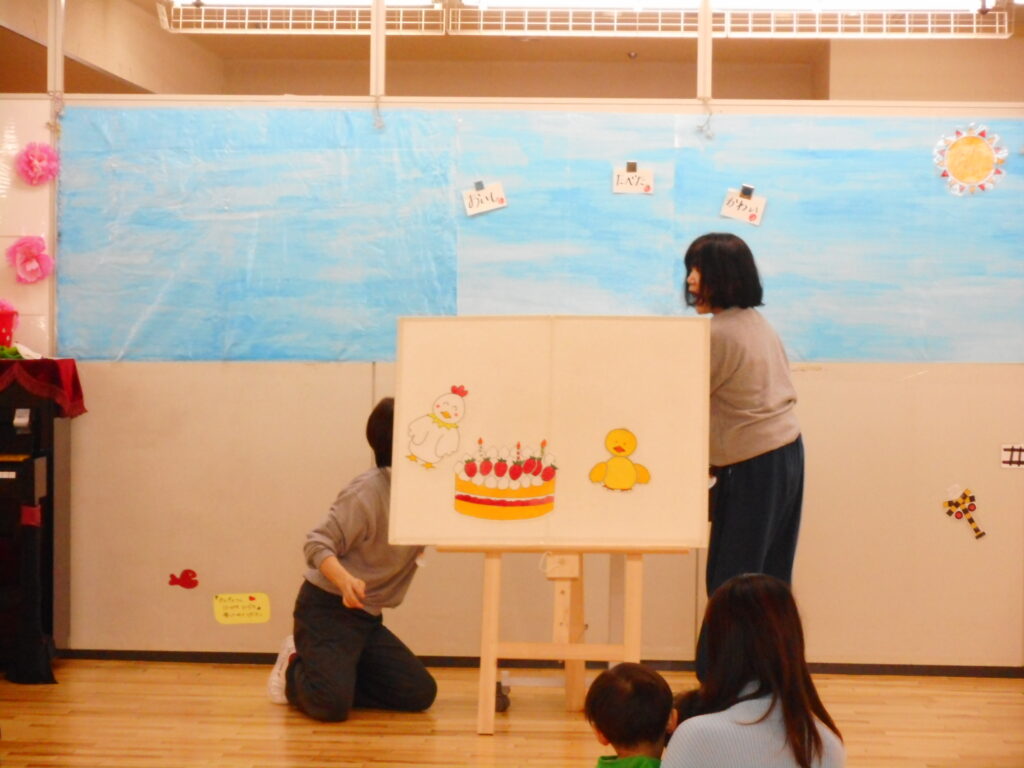 こんにちは(⌒∇⌒) 今日は、「あたまかたひざぽん」の手遊びをしました。 みんな上手に真似っこしていましたよ(*^-^*) そして今日がお誕生日のお友だちがいました! 「ハッピーバースデー」の歌をみんなで歌って、お祝いしました💐 パネルシアターもお誕生日にちなんで、バースデーケーキが出て来るお話でした🎂 みんなでいちご🍓やろうそく🕯をケーキに飾りました🎂 ✨誕生日の日も遊びに来てくださいね✨