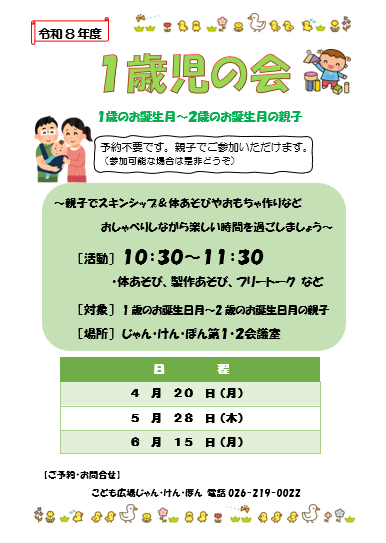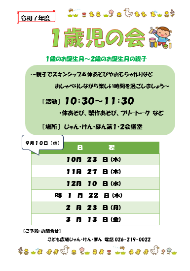 💛1歳児の会(1歳のお誕生月~2歳のお誕生月までの親子)