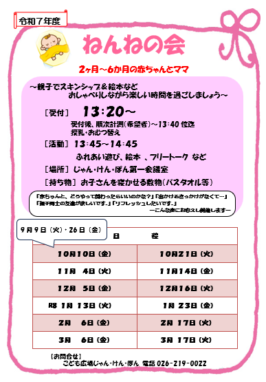 💛ねんねの会(生後2か月~6か月までの親子)