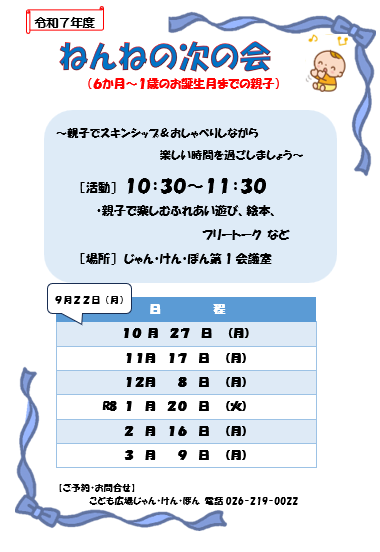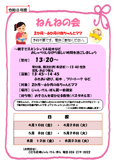 💛ねんねの次の会 (6か月~1歳の誕生月までの親子)