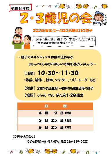 💛2・3歳児の会 (2歳の誕生月~4歳の誕生月までの親子)