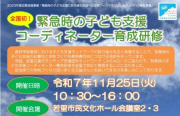 長野市において、緊急時の子ども支援活動が効果的に行われるために、地域・分野・セクターを超えた関係者同士の連携を促進し、子ども支援の環境整備につとめ、子どもたちの権利を守ることに寄与することを目指して活動しています。