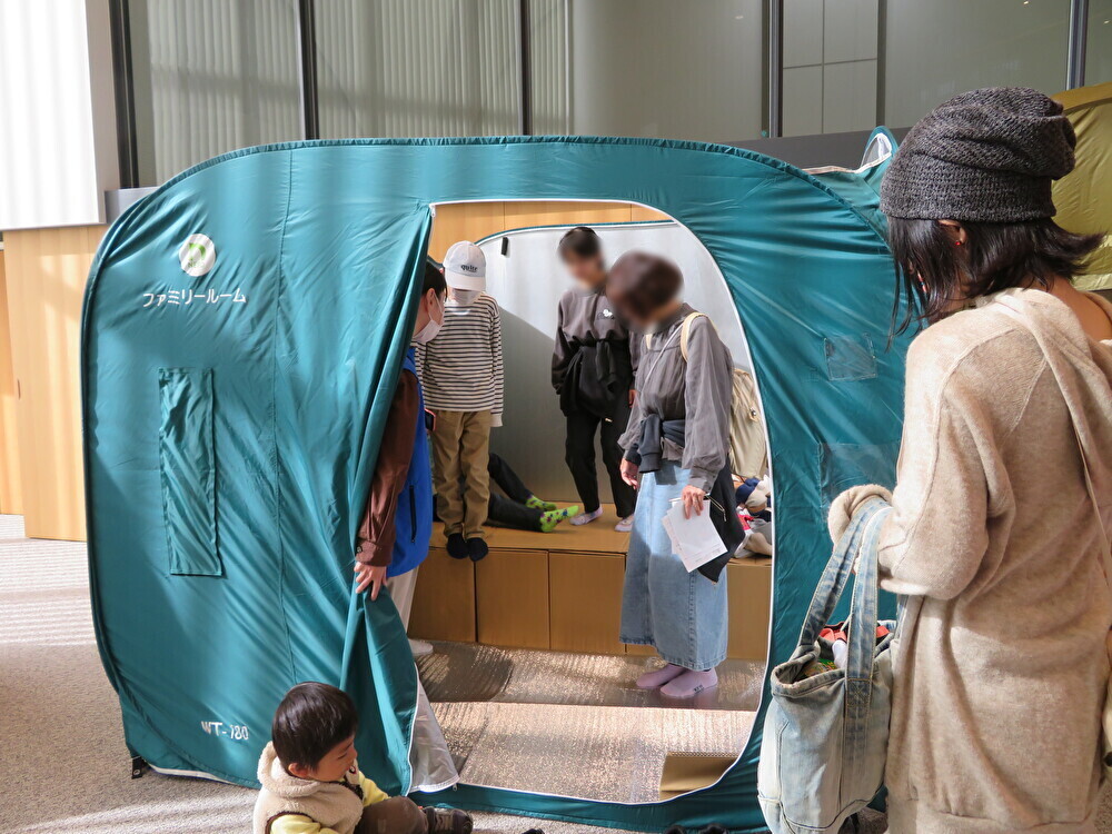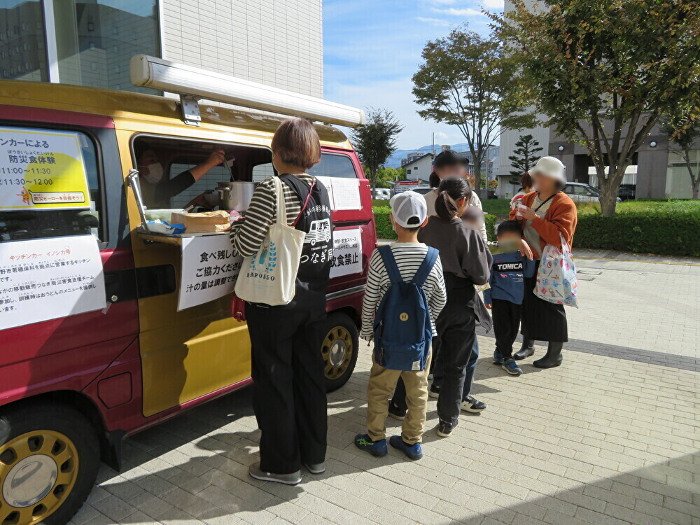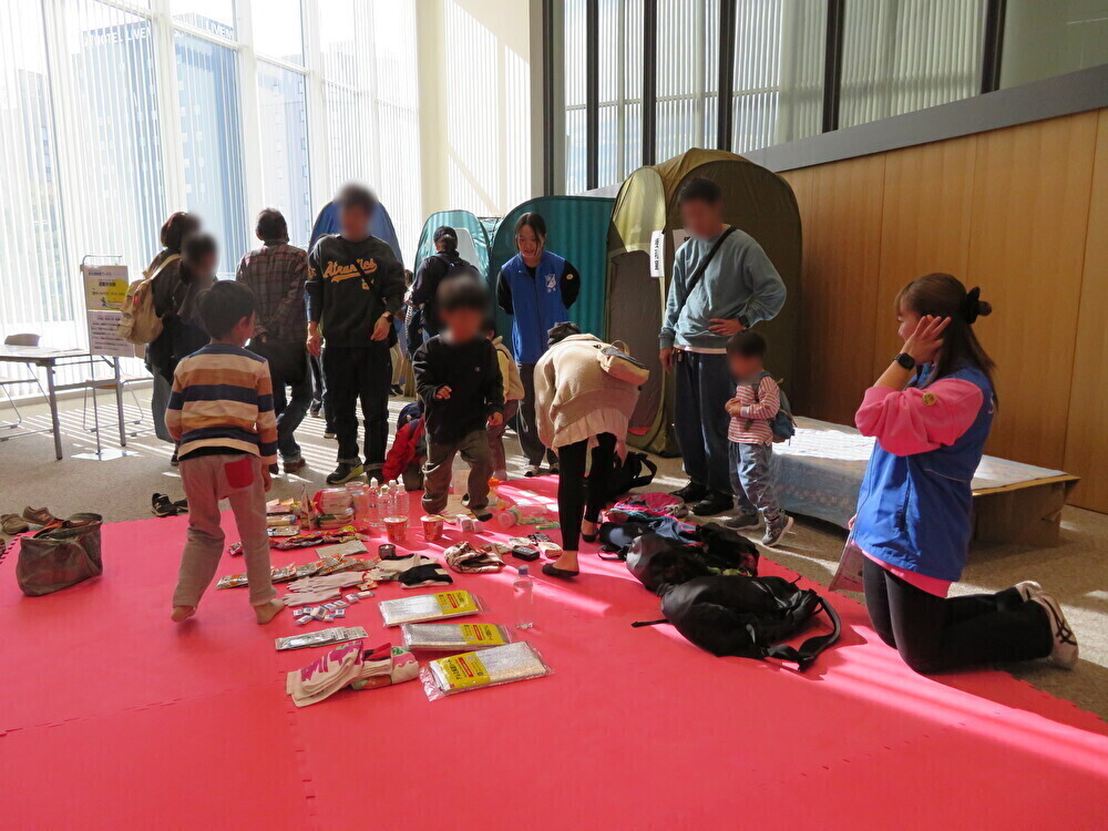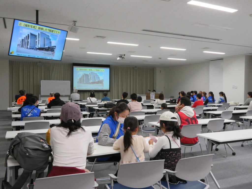 秋晴れとなった11月2日(日)、長野駅東口にある清泉大学キャンパスにて、子育て世帯向け防災イベント『みんなで防災ヒーローを目指そう!』を開催しました。 長野市緊急時における子ども支援ネットワークが、行政や社協とともに長野市での緊急時の子ども支援体制づくりを行っていることを多くの子育て世帯の皆様に知っていただくとともに、防災意識を高めるきっかけとなればと企画しました。 実行委員会には、清泉大学看護学部の学生や先生方、長野市緊急時における子ども支援ネットワークの関係者、キッチンカーによる災害食支援の体制づくりを行っている「ながの移動販売つなぎ局」が参画し、ともにイベントづくりを行いました。 イベント当日には、事前申込者60名を含め110名(未就学児25名、小学生21名、中高生2名、大人62名)が参加し、40名あまりの関係者との交流を通して、楽しみながら学びを深めていただきました。 今回のイベントには、出展者として損害保険ジャパン様や長野日産自動車様にご協力いただき、コープながの様やフードバンク信州様からは参加者景品となるお菓子などを協賛品としてご提供いただきました。 防災ジャパンダプロジェクトを推進している損害保険ジャパン様は、「水害きせかえゲーム」で水害時に適した服装や持ち物をイラストを使ったゲーム形式で学ぶなどし、清泉大学の学生が準備した2階フロアでは、テントや防災用トイレ、段ボールベッドを実体験する参加者たちでにぎわいました。 こども広場の「ペットボトルランタンづくり」では、子どもたちがデザインにこだわったオリジナルランタンに仕上げていました。 防災食体験では「キッチンカーイノシカ号」さんから、災害時を想定して、汁の食べ残しが出ないようにあんかけのうどんを提案いただきました。食べ残しはほぼゼロになり、「やさしい味」「あんにネギがからむので、残さず食べられる」と、参加者からも大変好評でした。 午後の防災講演会では、富山市在住の増井かおりさんが、夫と小学生の子どもたちが待つ、夫の実家のある輪島市に、一人で自宅から移動中の1月1日に発生した能登半島地震での体験を話しました。 輪島市のショッピングセンターに立ち寄っていた時に地震が発生、道路が液状化し激しい交通渋滞の中、輪島市役所に移動。家族も徒歩で市役所に来て合流。市役所の会議室は、排泄物があふれるトイレ、食料が足りない、足を伸ばして眠れないすし詰め状態の過酷な状況下、1月3日に富山の自宅に向けて出発。崩壊した道路を通過して帰るまでの体験に、参加者は聞き入っていました。増井さんは「大災害は自分の中のちっぽけな想定を上回ります。共助の大切さを認識し、命を守る行動をとりましょう」と訴えていました。 今回のイベントを通して、様々な立場の関係者が協働した成果を災害時にも活かせるよう、今後も緊急時の子ども支援体制づくりを行っていきたいと思います。