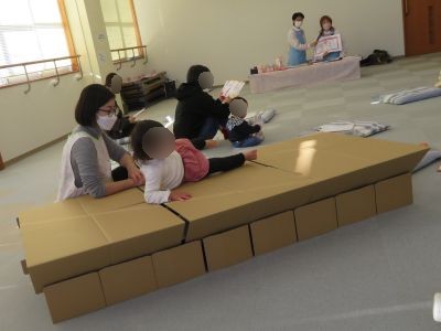12月4日(木)、篠ノ井こども広場このゆびとまれにて、子育て家庭向け防災講座を実施し、6組の親子が参加しました。西村館長からは、「防災について皆さんと一緒に考えていける機会にできれば」とご挨拶がありました。 江崎グリコのスタッフが2名ゲスト参加し、災害への備えについてお話されました。 災害時に役立つ簡単お湯ポチャレシピ「蒸しパン」の紹介もありました✨ 赤ちゃんのための備蓄が整っている避難所は限られるため、少なくとも3日分の備蓄が必要。非日常的なことは馴染みにくいので、日常的に液体ミルクやレトルト食品などの慣れておくことも大事! 後半のワークショップでは、参加者それぞれが実際に備蓄しているものを発表! アルファ米の試食も!