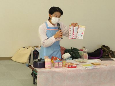 災害時に役立つレシピやグッズも会場内に展示され、参加者は興味深く見ていました。