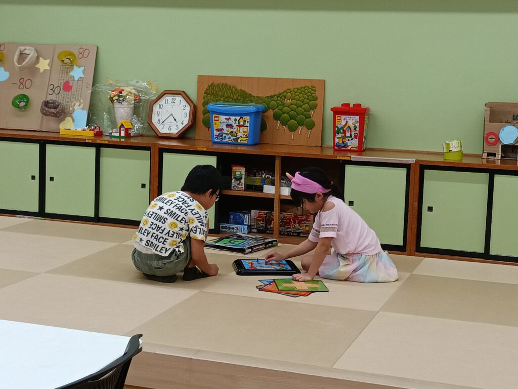 真剣な表情でボードゲームに向かっています。 🌸今日の献立🌸 ・夏野菜とひき肉のチーズ焼き・具たくさん味噌汁・蛇腹きゅうりの塩もみ 夏野菜とひき肉のチーズ焼きのお代わり!はもちろんですが、「黒豆」も大好評で「お代わり!」をしても、食後に「もっとたべたいなぁ~」と話していました。 今週の開館日は、30日(火)、2日(木)、3日(金)、5日(日)です。 【お申し込み・お問い合わせ先】