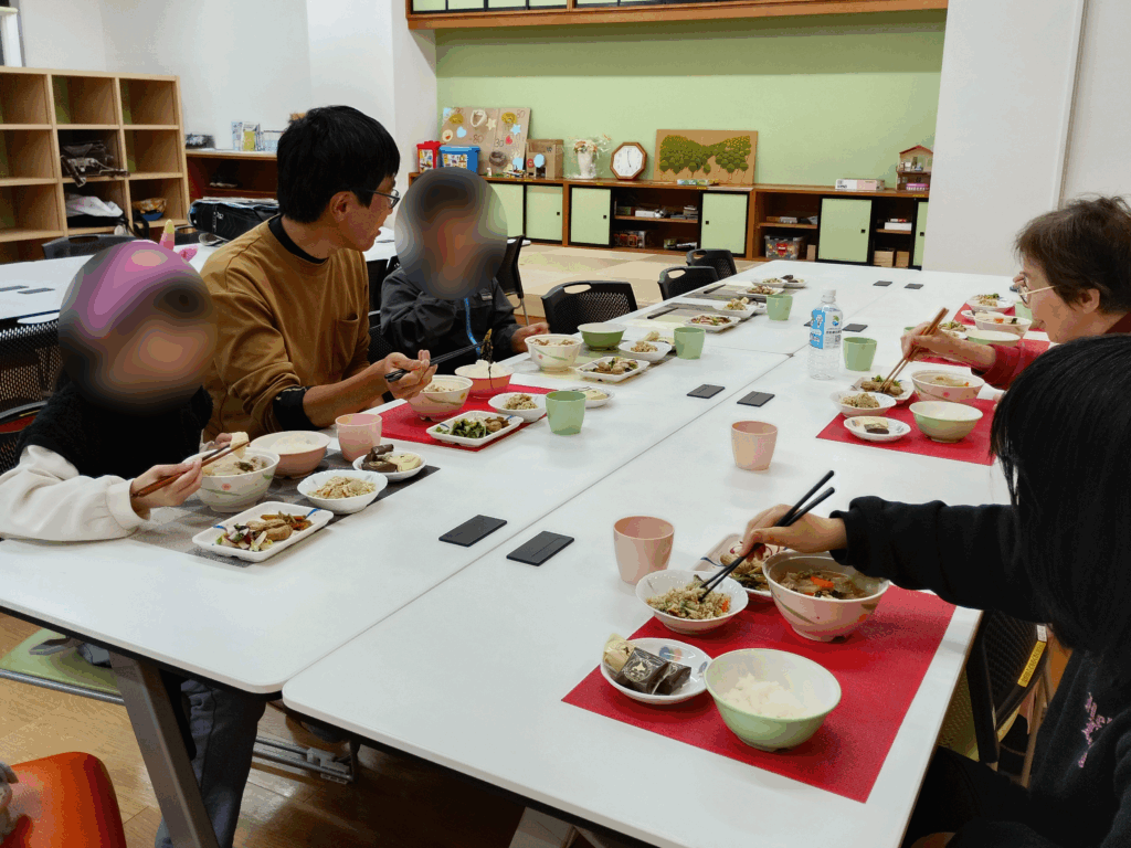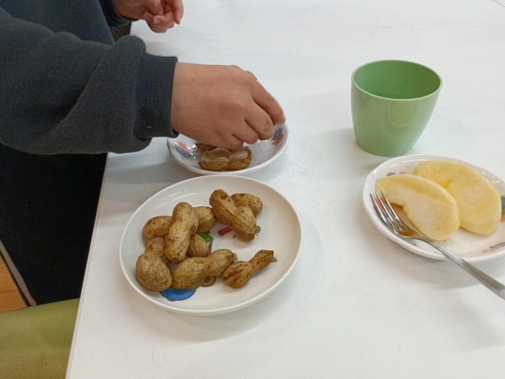 おやつに「茹で落花生とリンゴ」をいただきました。 初めて「茹で落花生」を食べた子どもたちは「美味しい!」と、 学校で芋ほりをした子どもが「芋の茎」を見せてくれました。 指を黒くしながら丁寧に筋を取った茎は、早速夕飯に 中学生とボランティアさんと食後の運動ですね。 「頑張って!」応援にも力が入ります。 🌸今日のメニュー🌸 来週の開館日は、4(火)、6(木)、7(金)です。 【お申し込み・お問い合わせ先】