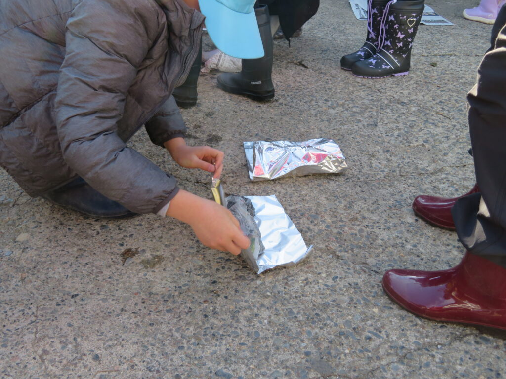 そこにアルミホイルで巻いたいたサツマイモを入れて、リンゴの作業に向かいました。