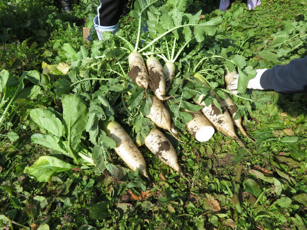 とても大きくなった大根を、ゆっくりと力を入れて抜いていきます。