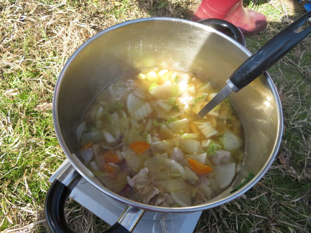 その場所で、野菜いっぱいの豚汁も作りみんなで食べました。