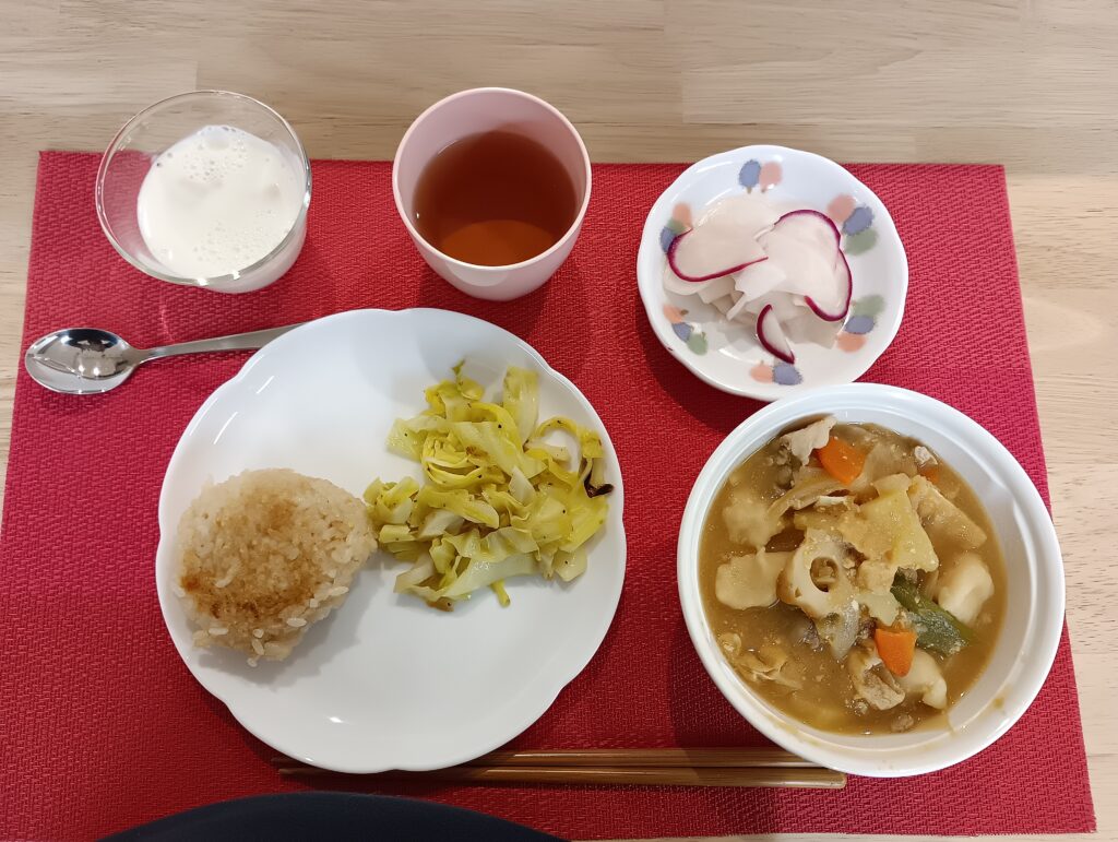 ・すいとん、キャベツのカレー風味炒め、カブの甘酢漬け、