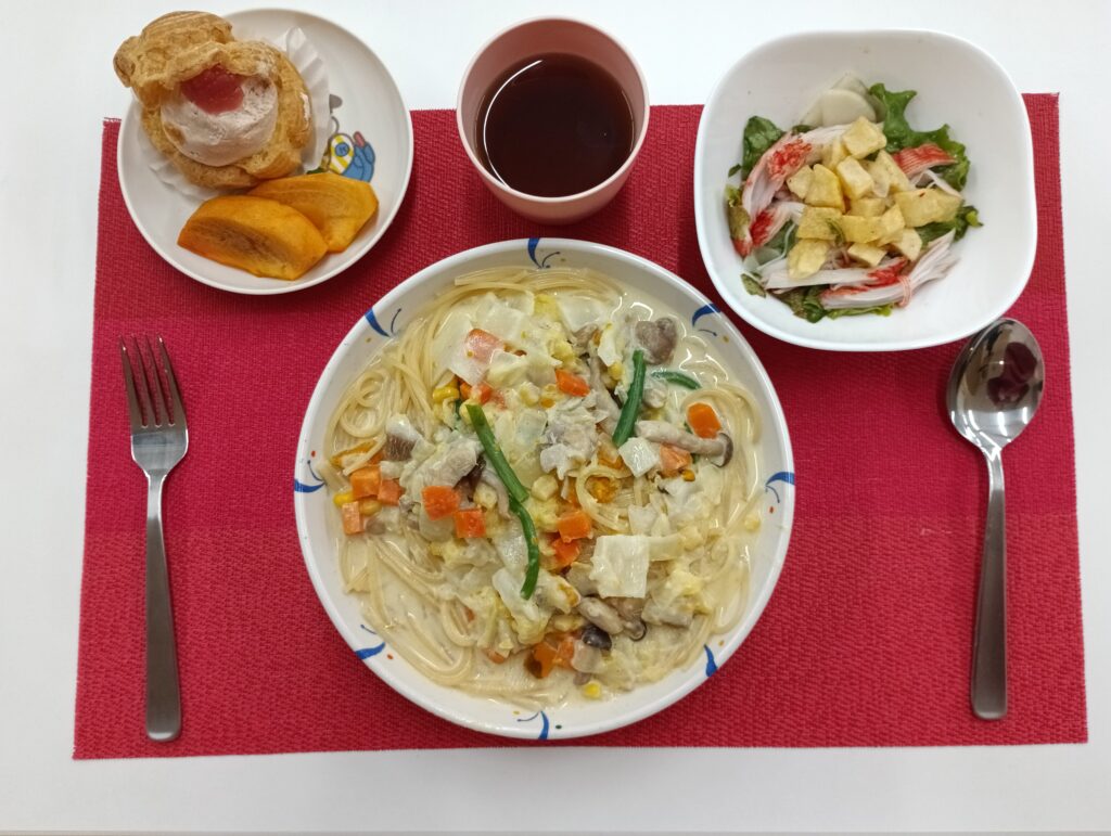 11月22日は「長野県産りんごの日」になります。 もぎたてのりんごを丸かじりしていた男児は おやつの後は、IQパズラープロをスタッフと競いました。 🌸今日の献立🌸 ・スープスパゲッティ(クリームソース)、ジャガイモの素揚げのせ野菜サラダ、シュークリーム、柿 具だくさんのスープスパゲッティをスプーンとフォークで上手に食べていました。 【お申し込み・お問い合わせ先】