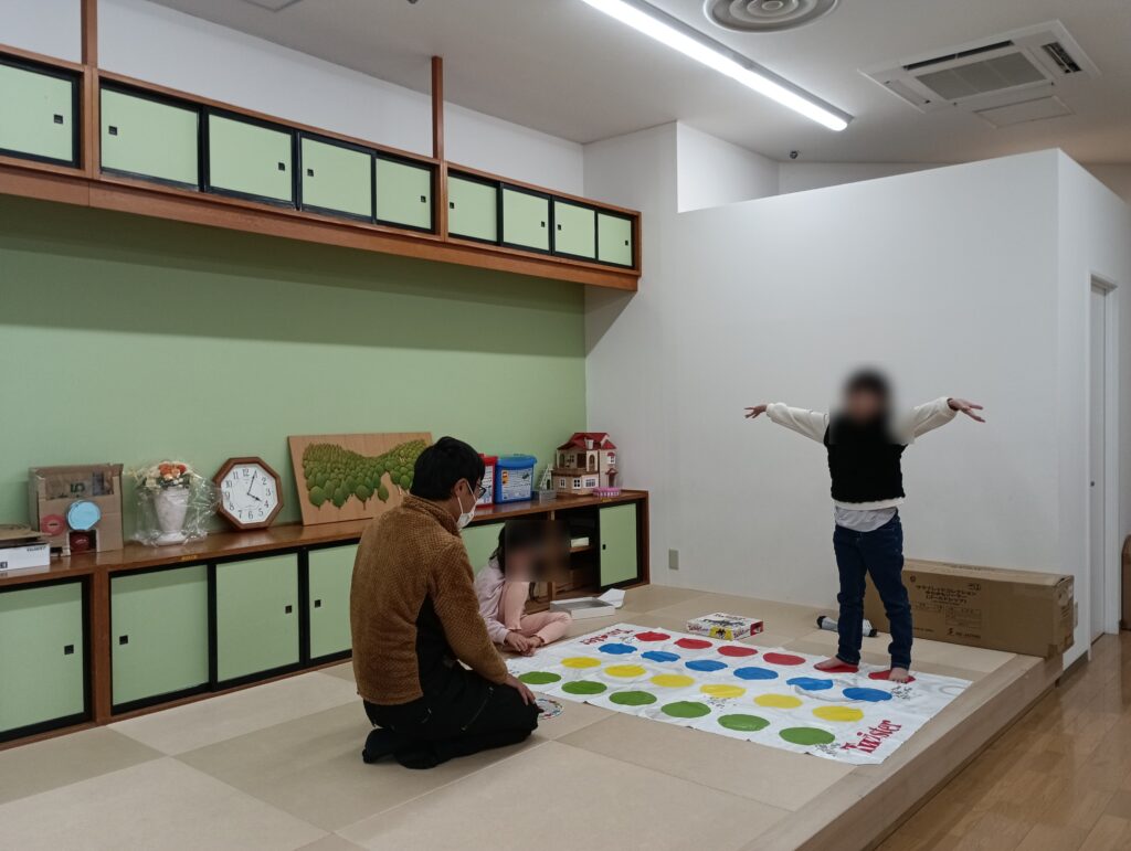 久々にツイスターを出してきて、右足、左足、右手、左足をゲームの指示に従って、のせていきます。