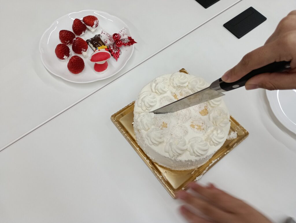 食事の後、等分に切り分けてみんなでケーキを堪能しました。