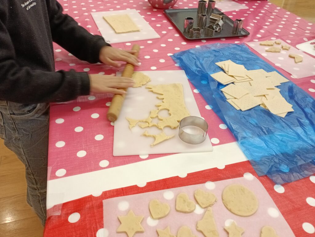今日はクッキー作りと外の掃除を行いました。