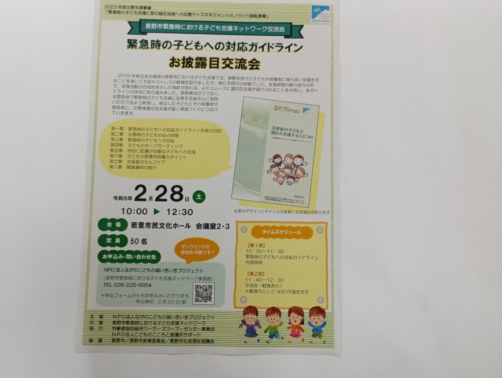 その経験を生かして、長野市緊急時における子ども支援ネットワークが立ち上がり、そして今回「緊急時の子どもへの対応ガイドライン」を作成しました。