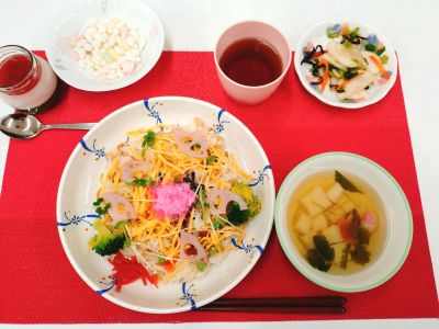 ちらし寿司、カブの塩昆布漬け、お吸い物🥢