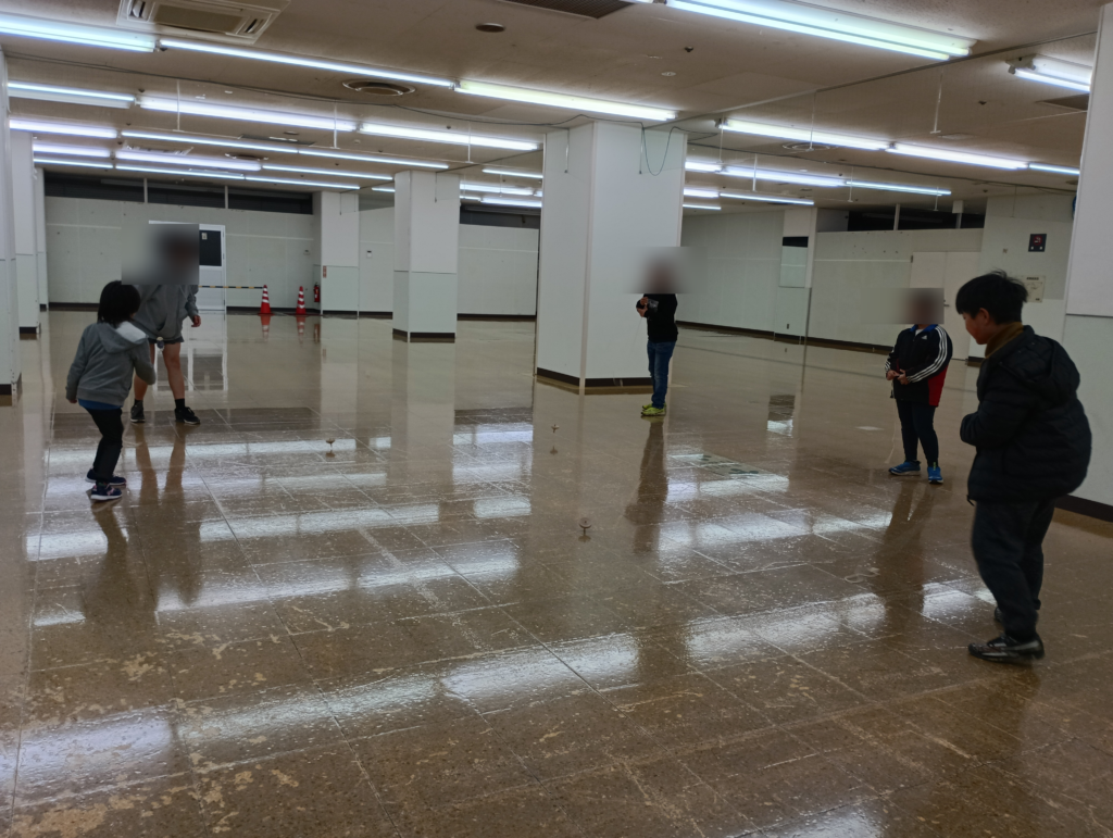 回る長さを競ったり、弾き飛ばしたりして、複数のコマで楽しむことが出来ました。