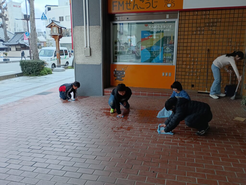 子どもたちは皆、雑巾で一生懸命磨いていました。