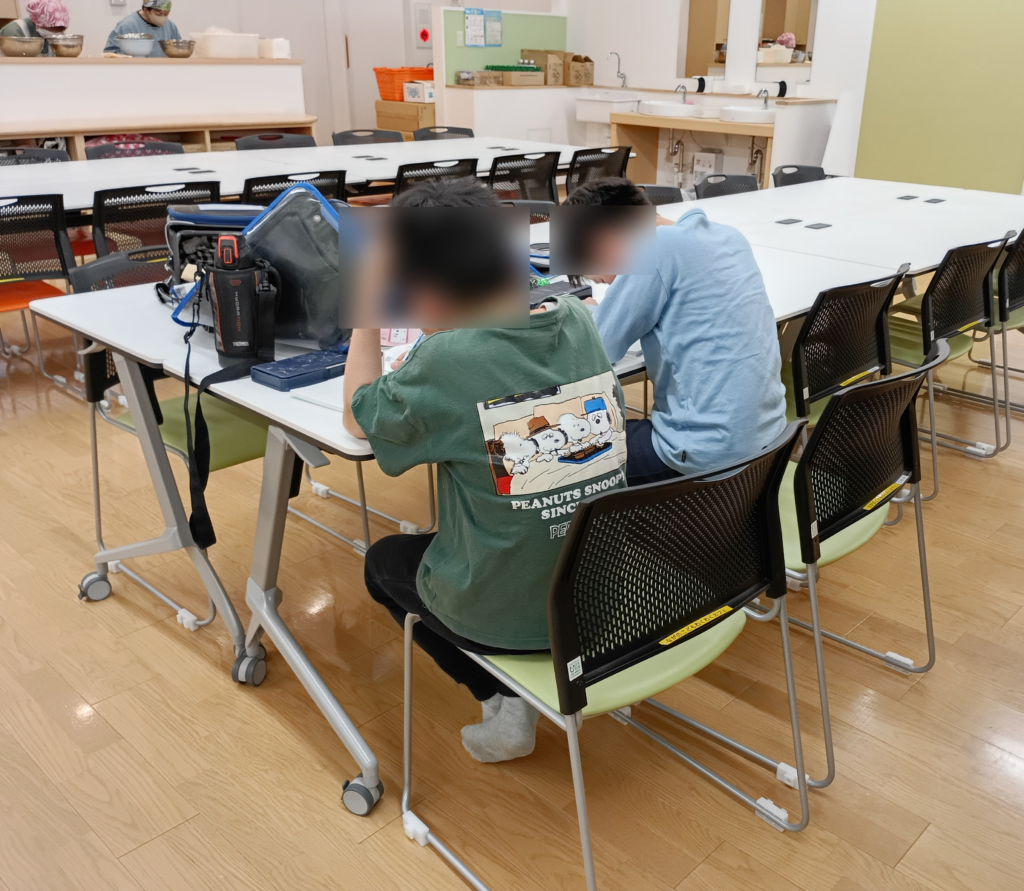 お友達と一緒に宿題をしていました。