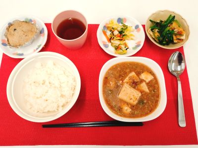 今日のメニューには豆腐や納豆、油揚げに豆乳と様々な大豆製品が😶